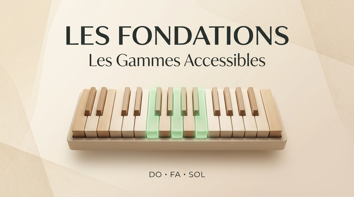 Au lieu d'apprendre les 12 gammes majeures en même temps (et de tout mélanger), vous maîtrisez d'abord les 3 gammes les plus accessibles et les plus utilisées : Do, Fa et Sol.